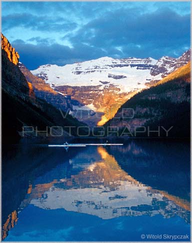 Kayaks at Lake Louise at sunrise